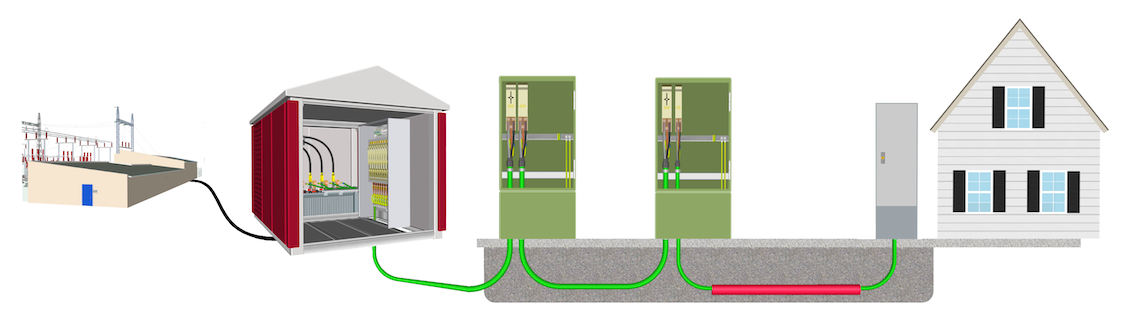 Illustrasjon som viser kobling fra huset til kraftstasjonen.
