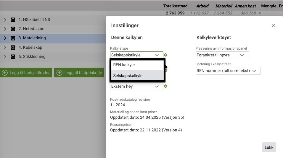 Verktøyet gir fleksibilitet hvor en kan velge mellom REN eller selskapskalkyle.
