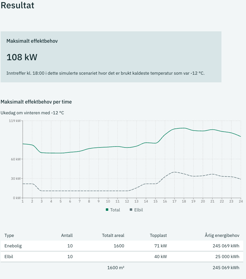 Det faktiske målte effektbehovet vil variere, men presisjonen øker når antall kunder øker. Metodikken er konservativt utformet – det forventes at verktøyet heller overestimerer enn underestimerer effektbehov.