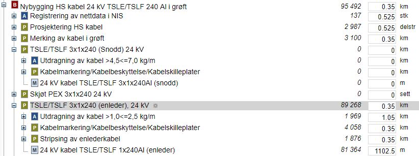Analyser av typiske prosjekter som utføres i bransjen danner ikke bare grunnlag for gjennomsnittlig materiell- og timepriser. De benyttes også til å sette sammen komplette arbeids- og materiellpakker for typiske anlegg og arbeidstyper i nettet - detaljert på enhetsnivå.