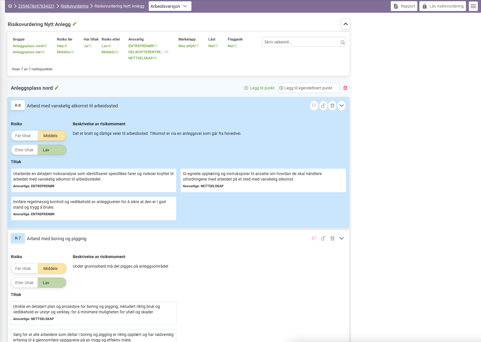 Revisjonskontroll sikrer at alle trinn og beslutninger er dokumentert og kan gjennomgås. Funksjonaliteten for å åpne og lukke risiko gir deg muligheten til aktivt å håndtere og overvåke risikoer gjennom prosjektets livssyklus.